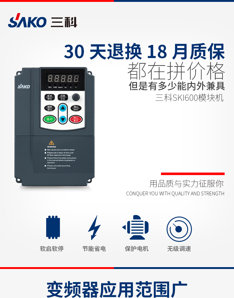 SKI670變頻器是三科推出的單相220v轉(zhuǎn)三相380v變頻器,它解決了沒有三相380v交流電地區(qū)需要啟動(dòng)三相電機(jī)的問(wèn)題,此款變頻器采用德國(guó)技術(shù),IPM智能模塊機(jī),使用簡(jiǎn)潔方便,同時(shí)具備強(qiáng)大的保護(hù)及驅(qū)動(dòng)功能。