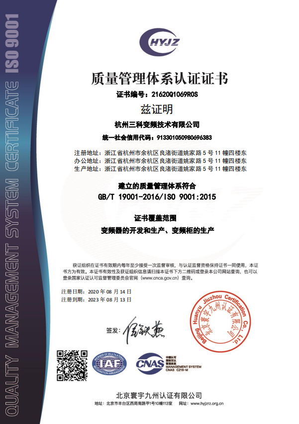 質(zhì)量管理體系認(rèn)證證書