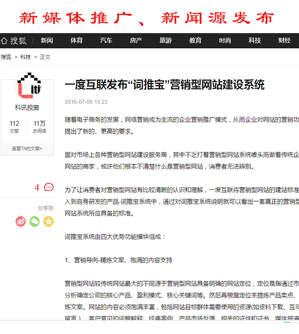 軟文營銷、博客營銷、新聞源、自媒體推廣讓品牌傳播全網(wǎng)覆蓋